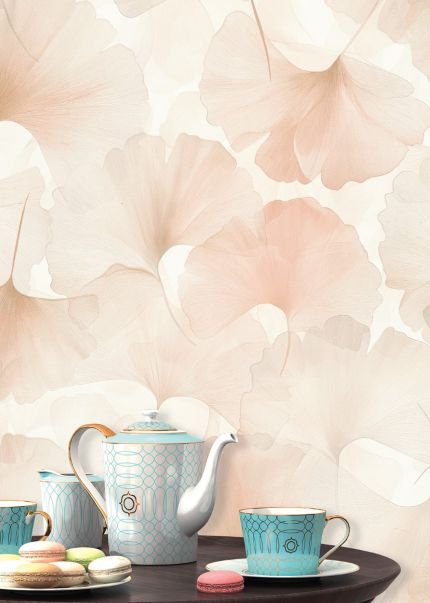 Le papier peint Aveline Rose Clair fait entrer dans votre intérieur la délicatesse du gingko, symbole d’élégance et de sérénité. Les feuilles de cet arbre légendaire semblent flotter avec grâce sur le fond, portées par des tons pastel de rose, de beige doux et de blanc ivoire. Le résultat ? Une ambiance apaisante, presque onirique, comme si les premières lueurs d’un matin de printemps se reflétaient sur vos murs.