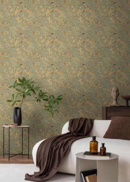 Le papier peint Forence Creamy Green est le choix parfait pour ceux qui apprécient la qualité et le style dans leurs intérieurs. Fabriqué en non-tissé de haute qualité, ce papier peint offre une option de décoration délicate et naturelle avec une légère touche d'élégance. Le fond a une couleur verte chaude qui crée une atmosphère douce et légère dans l'intérieur. Sur ce fond se trouvent d'élégantes branches avec des feuilles dans les tons crème et marron. Les feuilles sont stylisées en forme de ginkgo, ce qui confère au design un aspect naturel et léger.