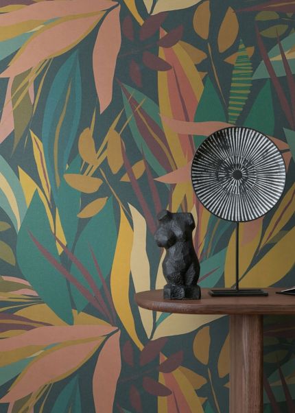 Le motif est dense et répété, donnant l’impression d’un jardin tropical ou d’une jungle luxuriante. Le design est à la fois vivant, énergisant et coloré, parfait pour égayer un intérieur. C’est une excellente option pour une chambre d’enfant, une cuisine contemporaine, ou encore un atelier artistique, là où la fraîcheur et la vivacité sont recherchées.