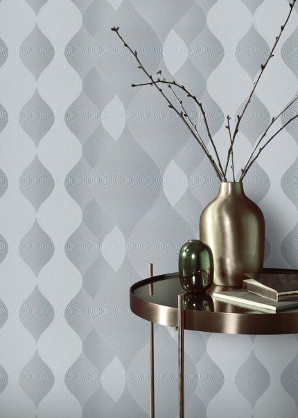 Doté d'un design abstrait unique, le Mirage Gris vous permettra d'exprimer votre style audacieux et artistique. Les vagues délicates et les motifs géométriques contrastants créent une ambiance dynamique et stimulante dans la pièce. Chaque jour, vous serez transporté(e) dans un monde de créativité et d'inspiration avec ce papier peint à vagues.