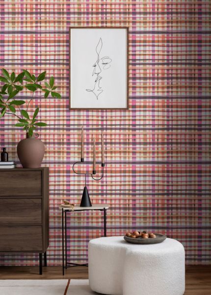 Les papiers peints Sidney Violet-Beige sont le choix parfait pour ceux qui recherchent qualité et style dans leur intérieur. Fabriqués en intissé haut de gamme, ces papiers peints affichent un design géométrique audacieux, avec un motif en grille entrelacé dans des tons beige, violet, orange et vert foncé. Leur motif crée un effet de texture dynamique, apportant une touche moderne et originale à la décoration.