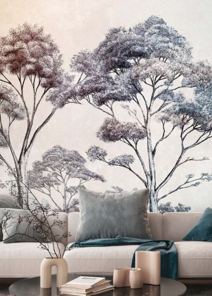 Conçus sur un support intissé de haute qualité, ces papiers peints au motif paysager représentent de grands arbres aux feuillages légers dans des tons bleu-gris et brun sur fond blanc. L’illustration, réalisée dans un style aquarelle, évoque une sensation d’espace et de profondeur tout en apportant une atmosphère douce et raffinée. Le thème naturel crée un lien subtil avec l’extérieur, dans un esprit organique et contemporain. La dominance du blanc illumine la pièce, l’agrandit visuellement et lui confère une touche de fraîcheur et de modernité.